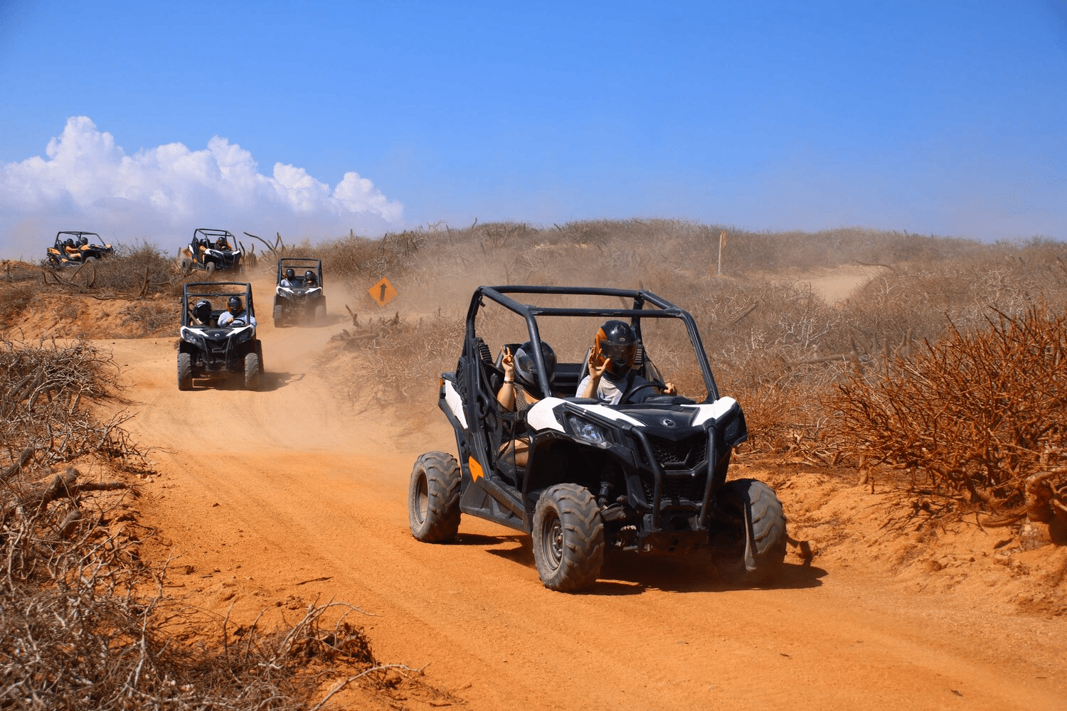 Desde el momento en que te unes al tour, te sumerges en un mundo de paisajes impresionantes y experiencias emocionantes. Conducirás tu propio UTV (vehículo utilitario todoterreno) por sinuosos senderos que atraviesan el escarpado desierto mexicano. La emoción de maniobrar estos potentes vehículos te permite disfrutar de la libertad de explorar terrenos variados, desde caminos polvorientos hasta colinas empinadas con vistas panorámicas del océano Pacífico.